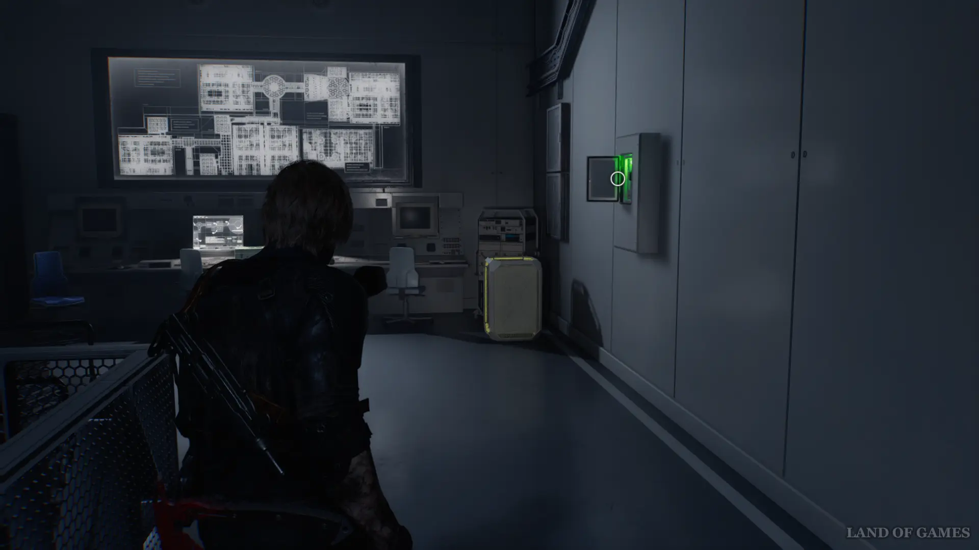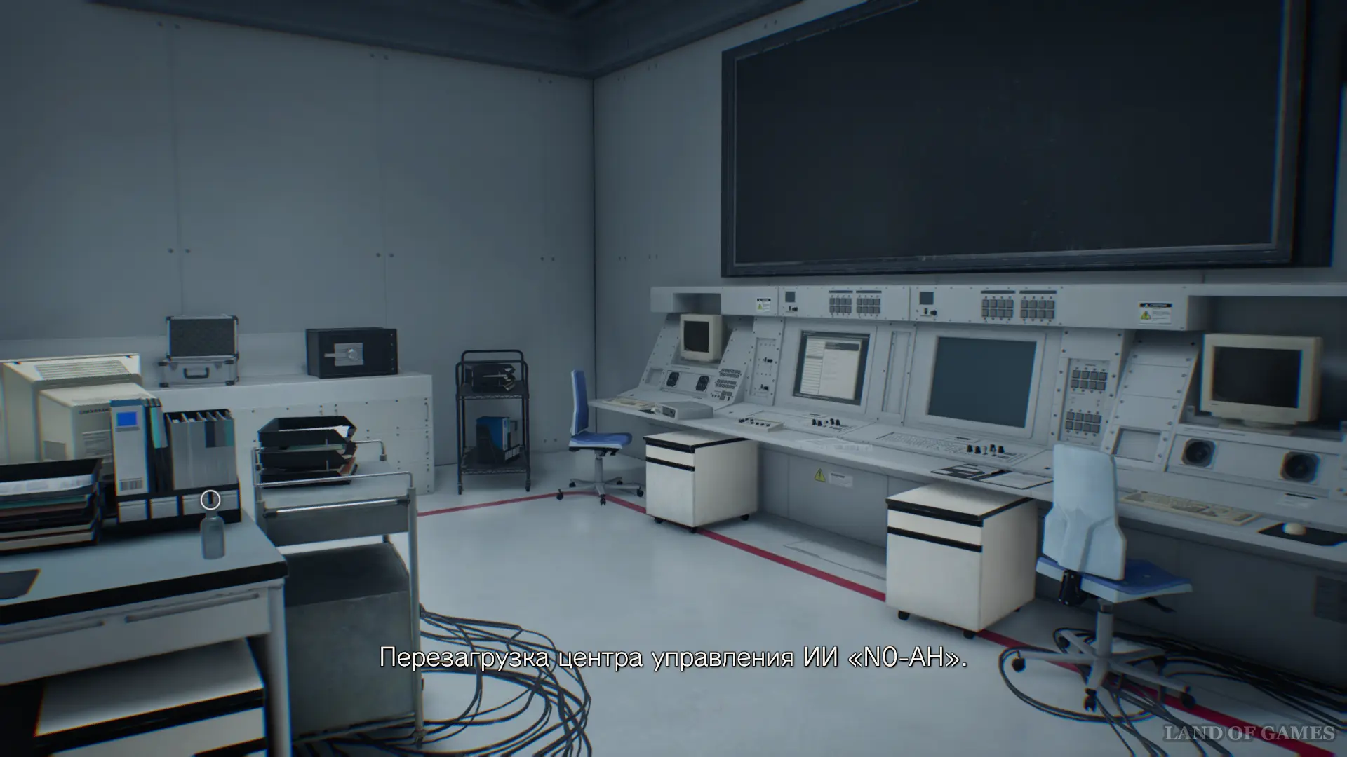После этого изучите панель под большим монитором, чтобы посмотреть сюжетный ролик и закончить данный этап игры.