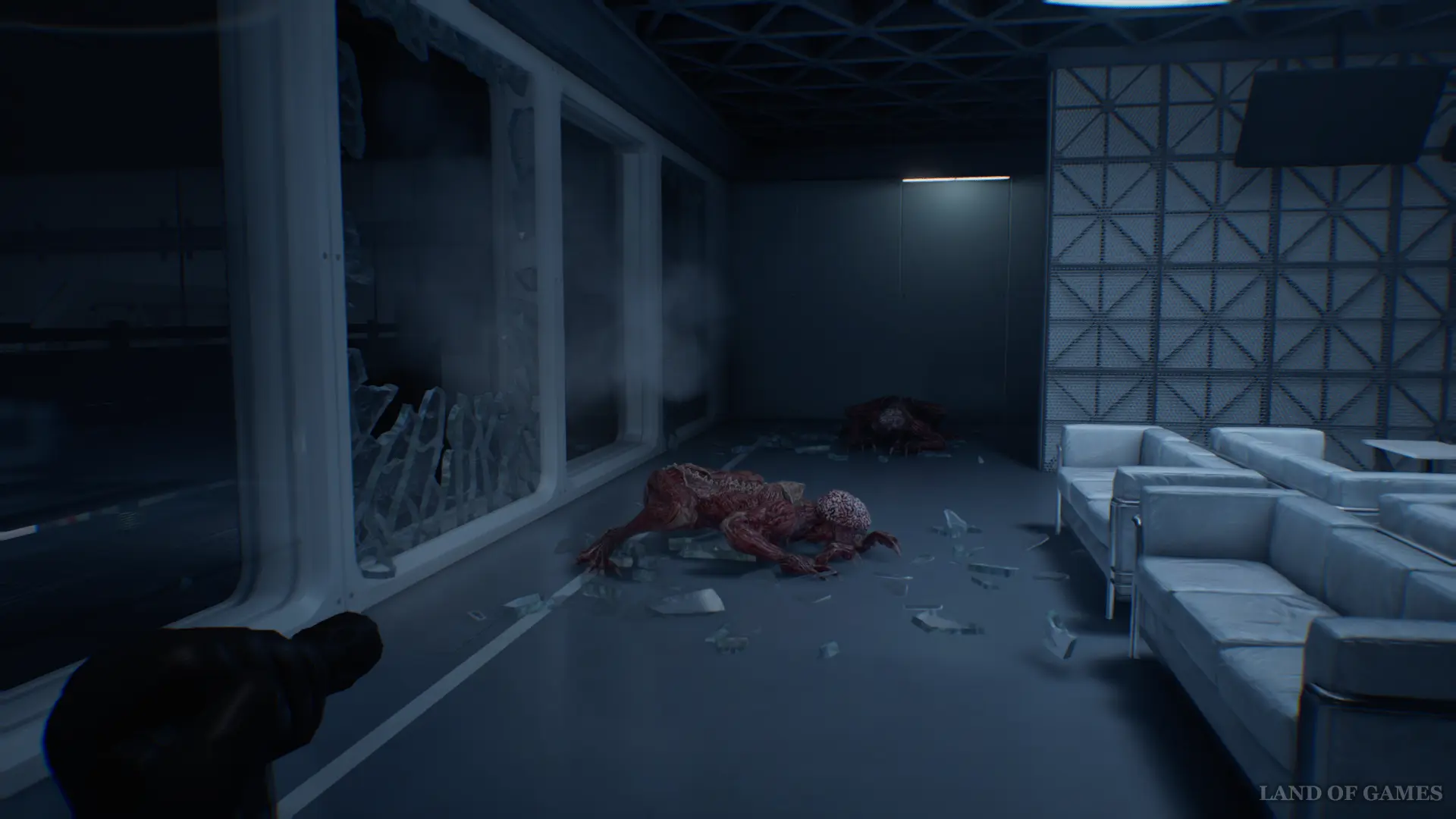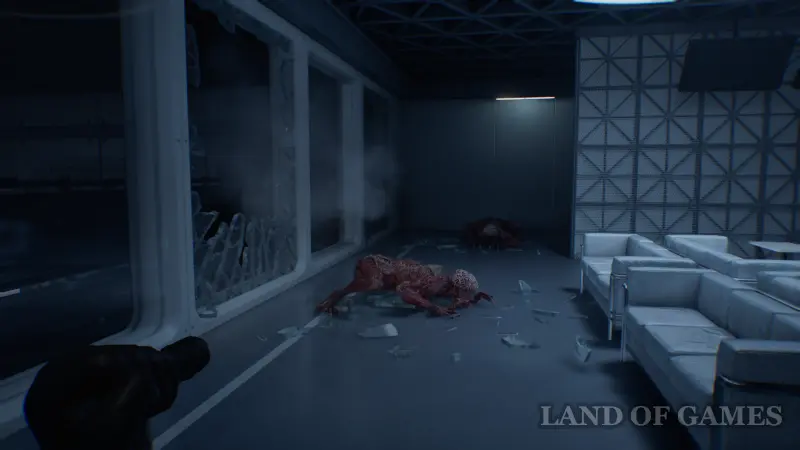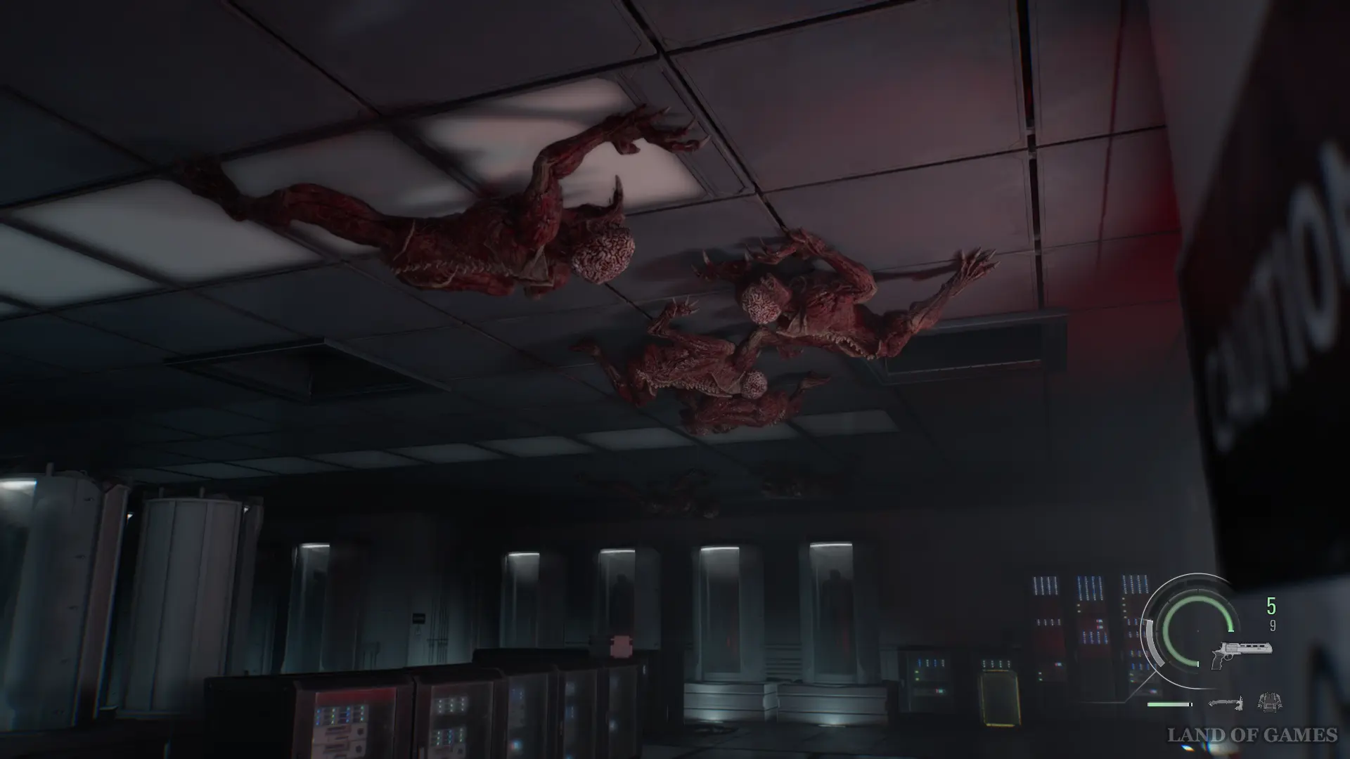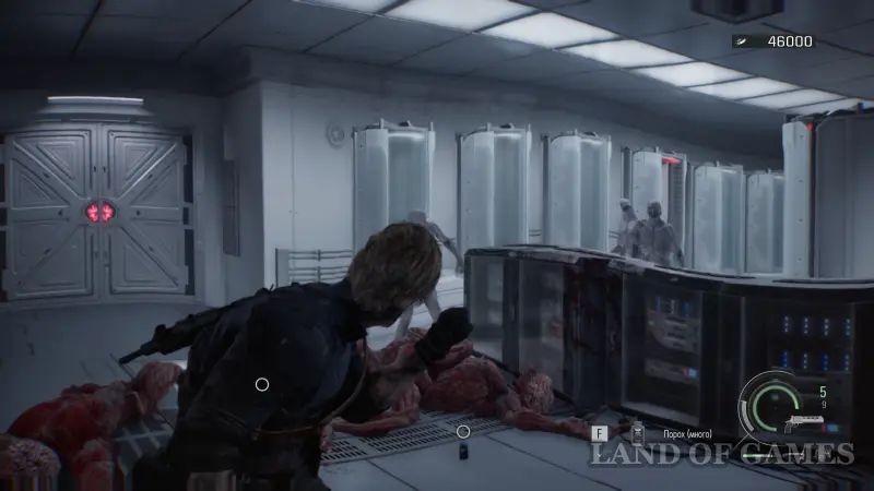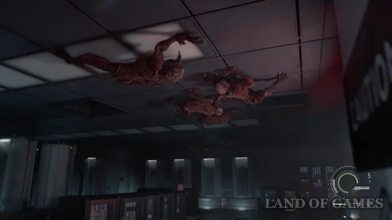 При входе в помещение на легкой сложности вы увидите лизунов, свисающих с потолка. Используйте канистры с горючим, чтобы уничтожить большую часть врагов. На уровне безумном уровне сложности с лизунами вы столкнетесь чуть позже.