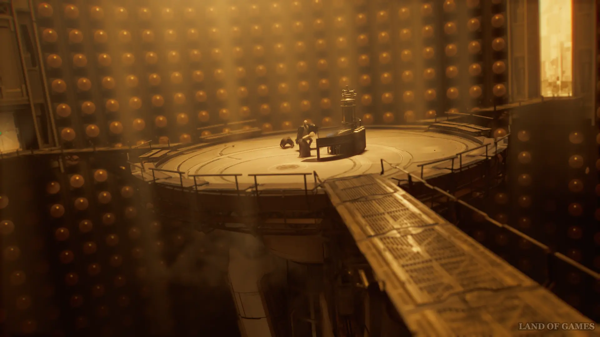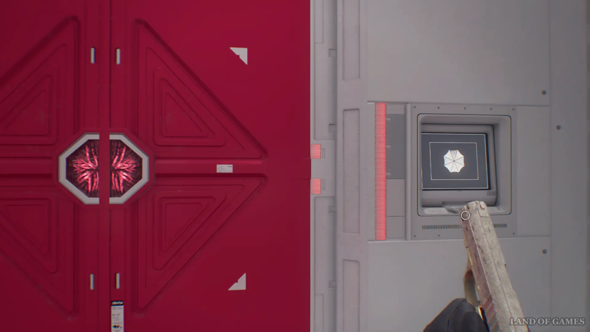 Вернитесь к запертым дверям вестибюле и вставьте в панель полученные сферы, чтобы войти в Архив.