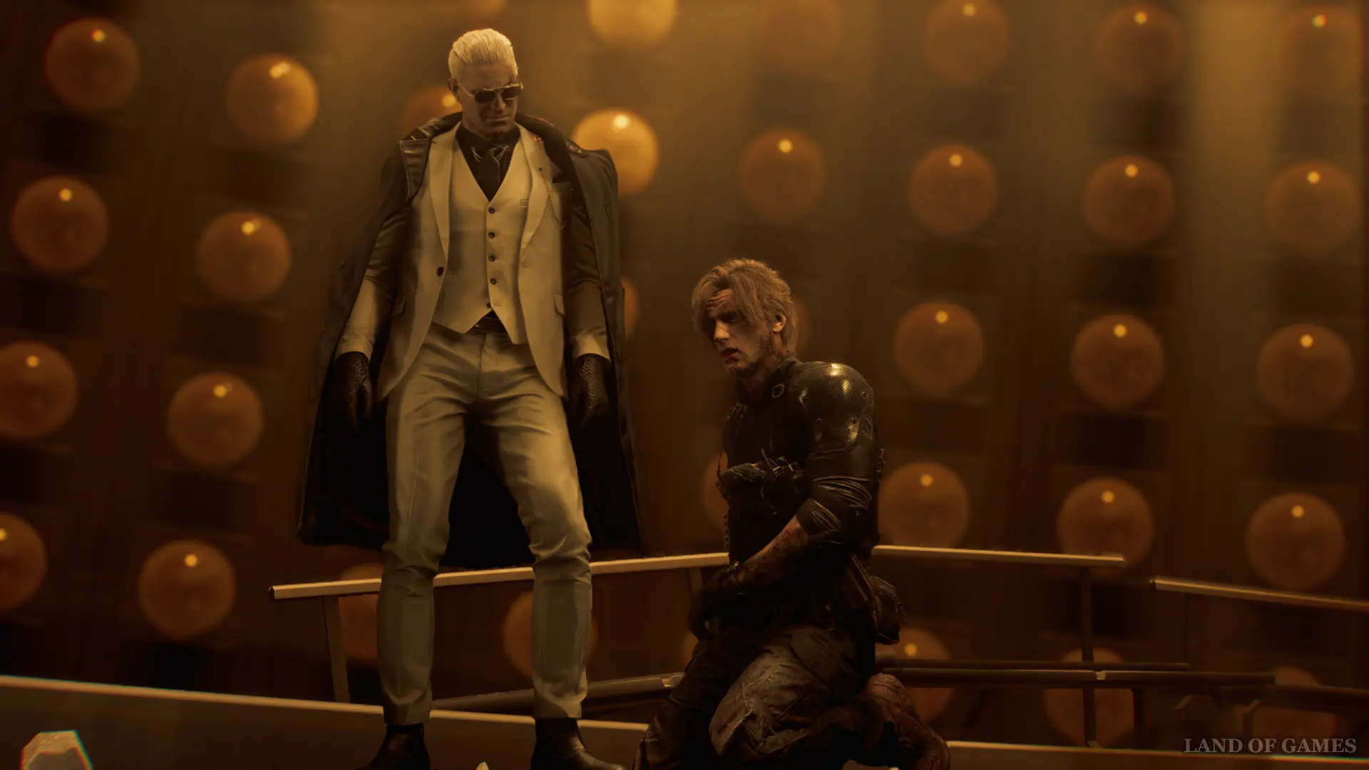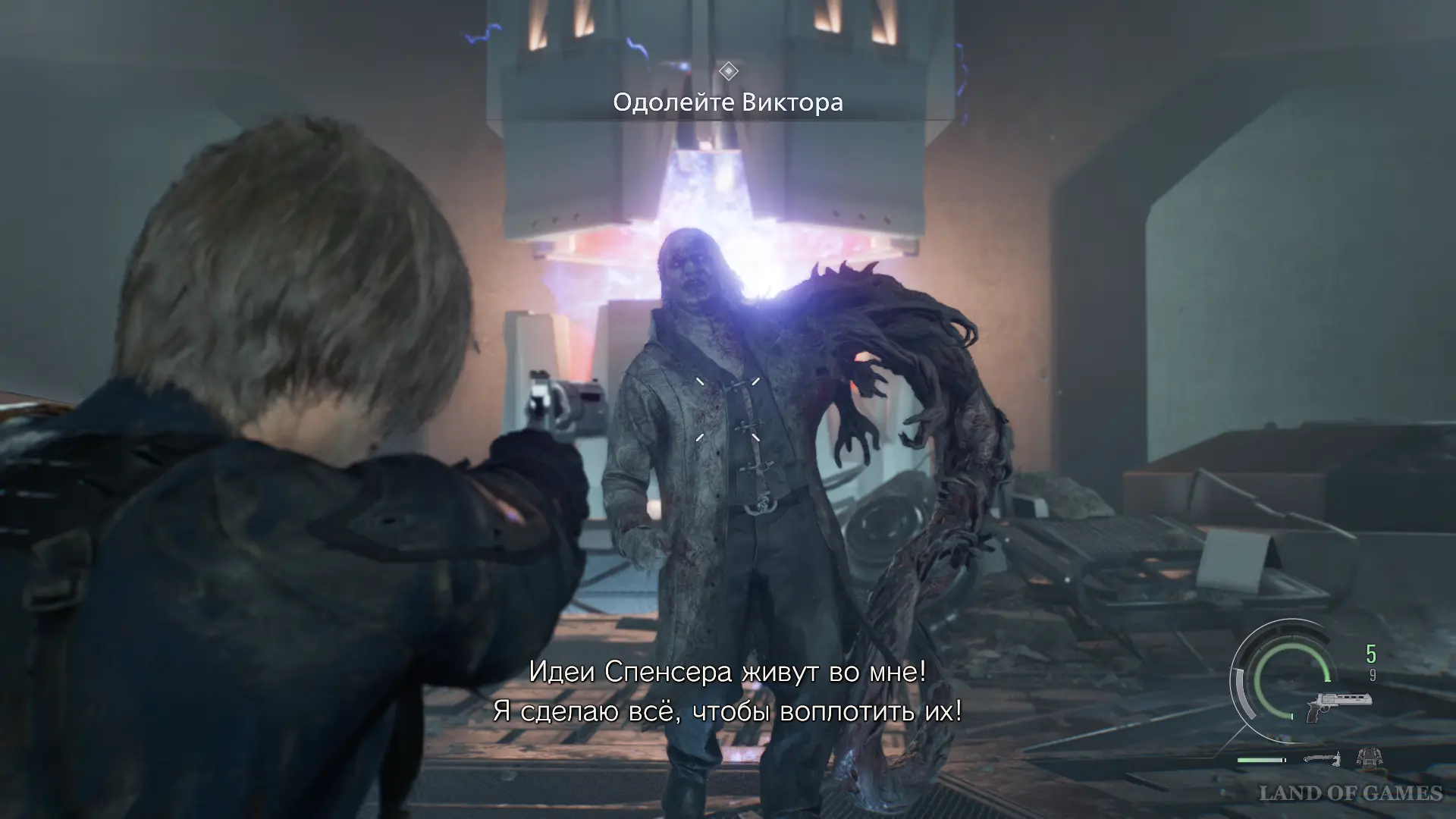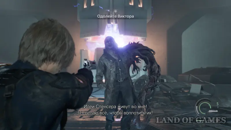 Финальная битва за Леона против Виктора Гидеона проходит в два этапа. В первой фазе сражение будет напоминать бой с Тираном. Противник будет перемещаться по полю боя и атаковать в ближнем бою.
