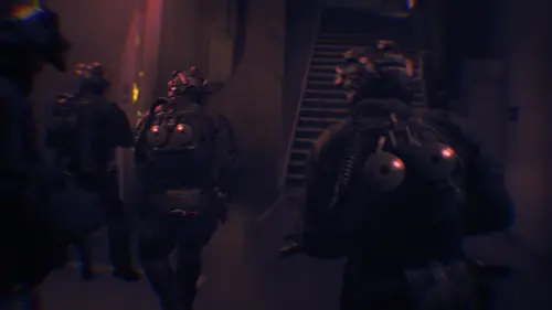 После ее завершения вернитесь в предыдущую комнату. В этот момент свет погаснет, и в помещение ворвутся четверо бронированных противников.