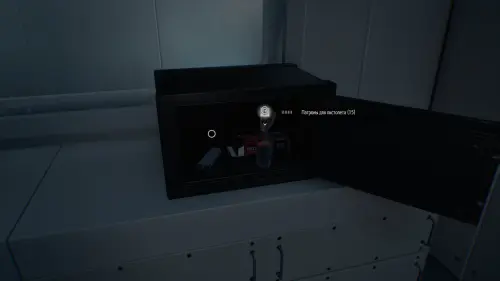 В этой же комнате на столе находится последний сейф, открытие которого разблокирует ачивку «Сейф — место ненадежное».