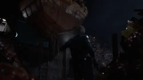 Идите к центральной системе очистки Вернувшись к игре за Леона, воспользуйтесь лестницей, чтобы выбраться из свалки. Пройдите по коридору и зайдите в комнату с точкой сохранения.