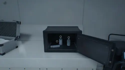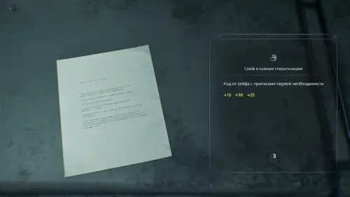Напротив входа вы увидите запертый сейф с необходимыми расходниками. Код от него вы сможете получить значительно позже, но чтобы сэкономить время, вы можете ознакомиться со всеми кодами от сейфов в отдельном руководстве.