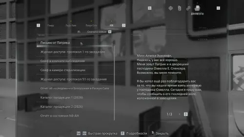 Прочитайте полученный документ Письмо от Патрика и зайдите в дверь слева.