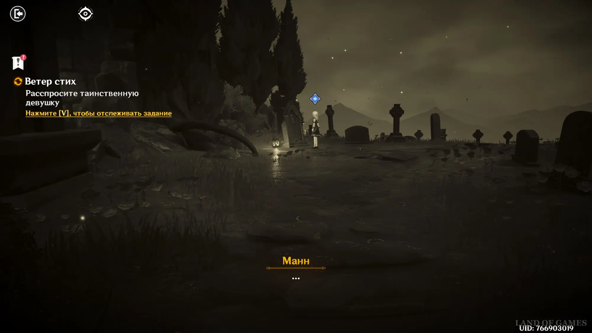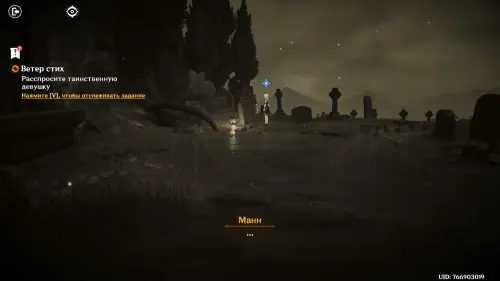 Исследовав аномалию (кровать) подойдите к таинственной девушке возле надгробия и поговорите с ней. Снова послушайте Манна, после чего беседа завершится, а у вас стартует первая миссия цепочки.