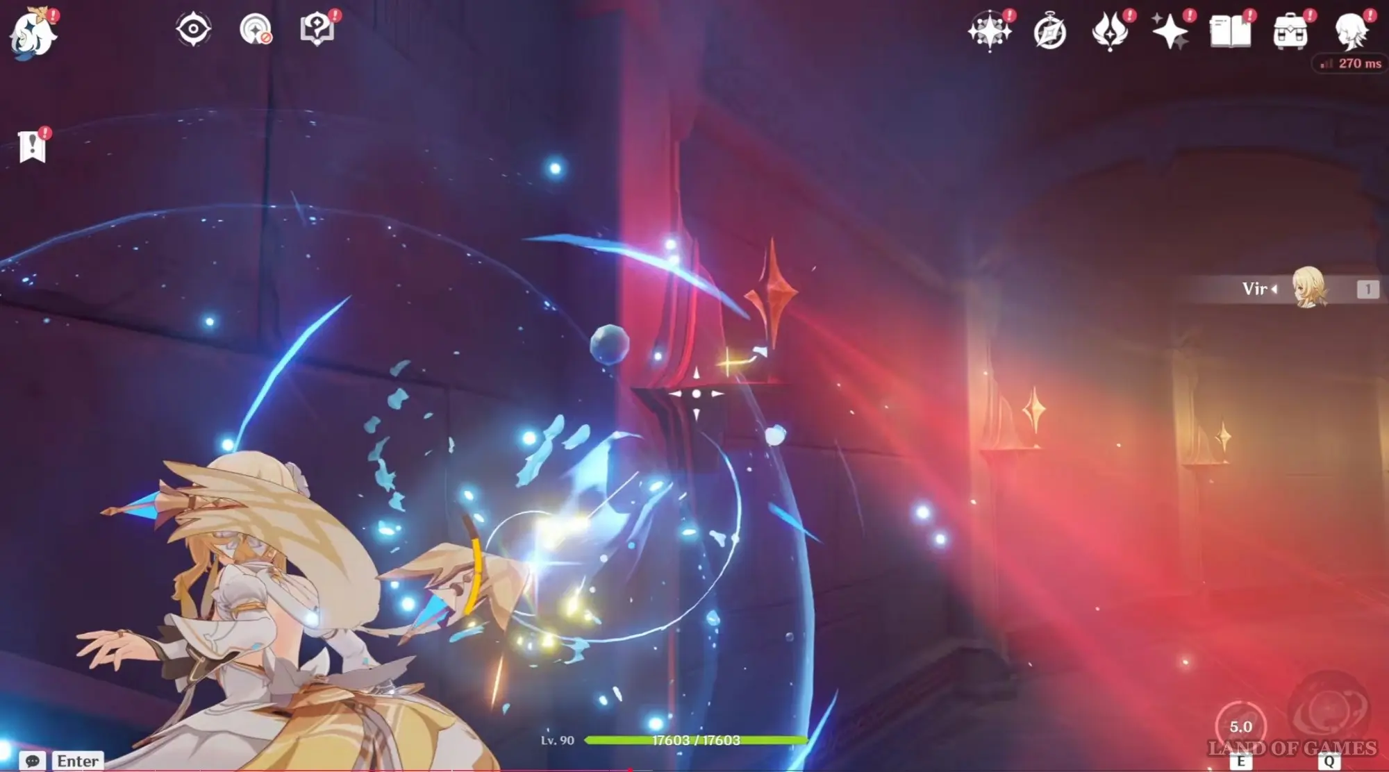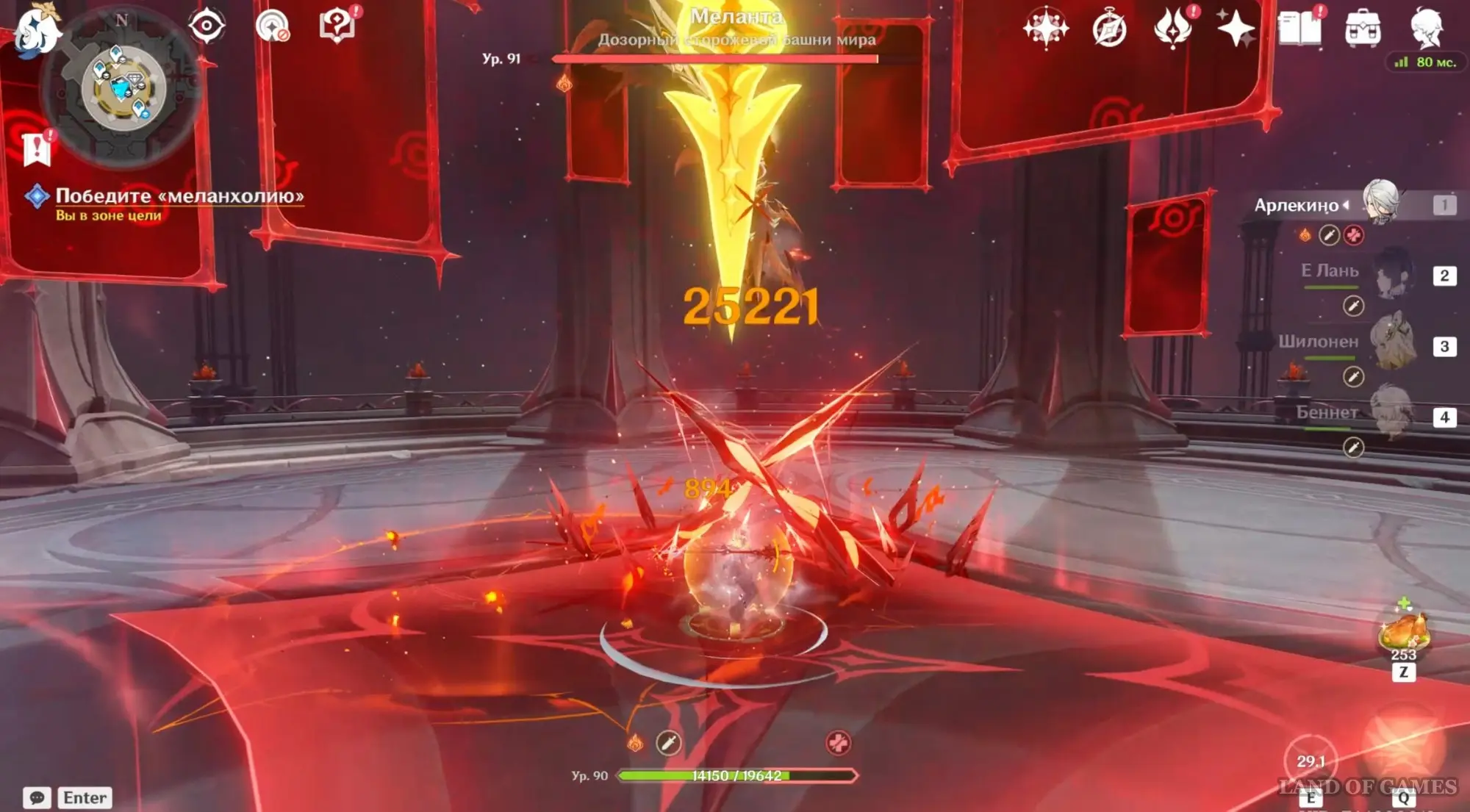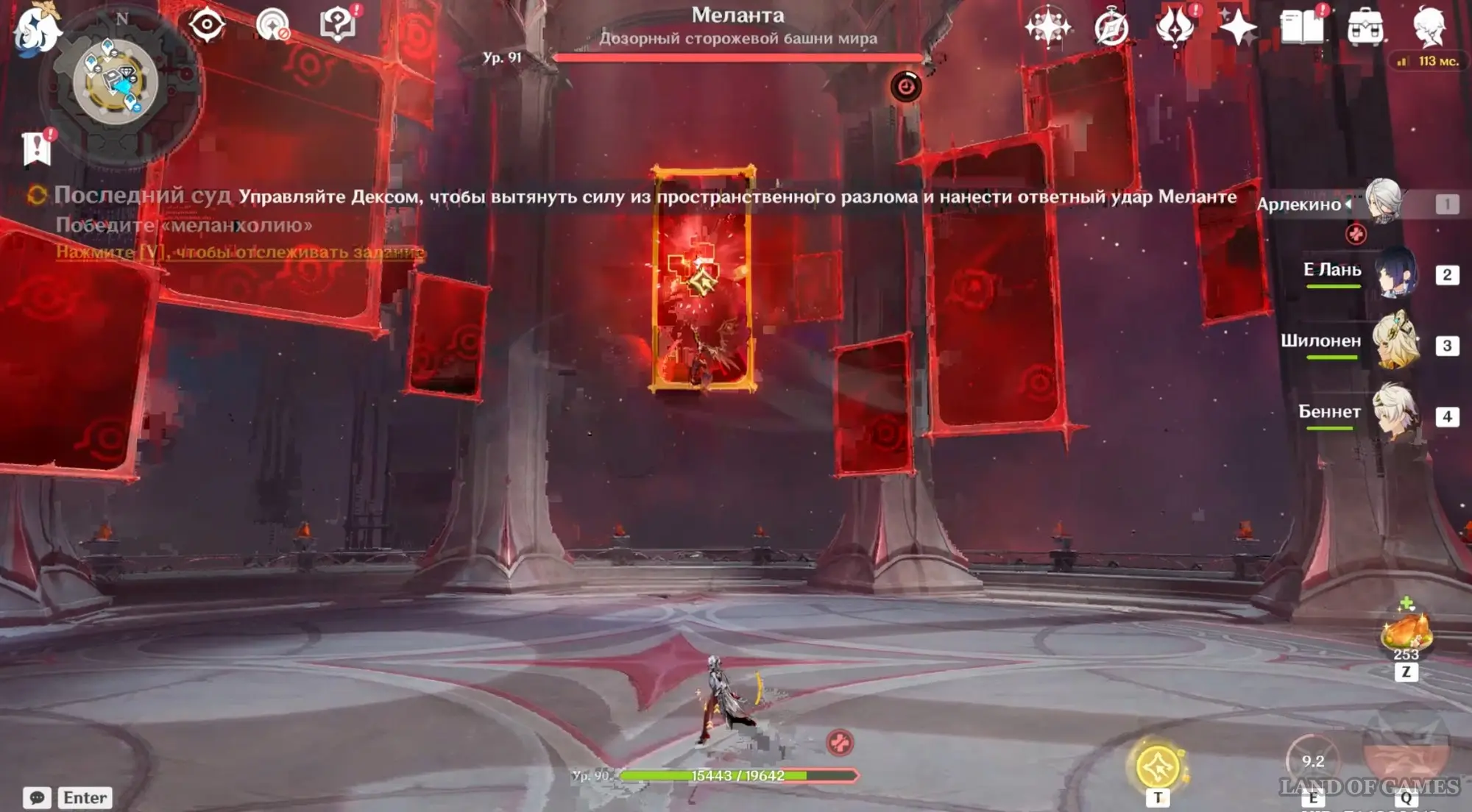 Вам необходимо совершить данный процесс несколько раз. С каждым разом пространственных разломов будет становиться все больше, поэтому придется быстрее нажимать «Т». Противник при этом разучит новый удар – он поднимет золотое копье, а на земле появится большая красная область. Как можно быстрее покиньте красную зону, чтобы не получить урон.