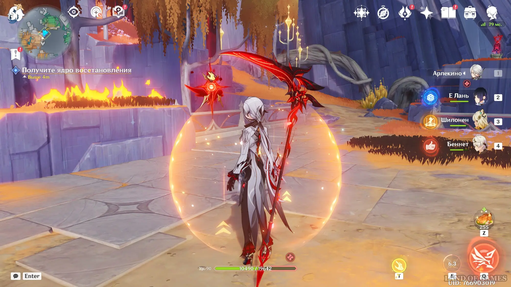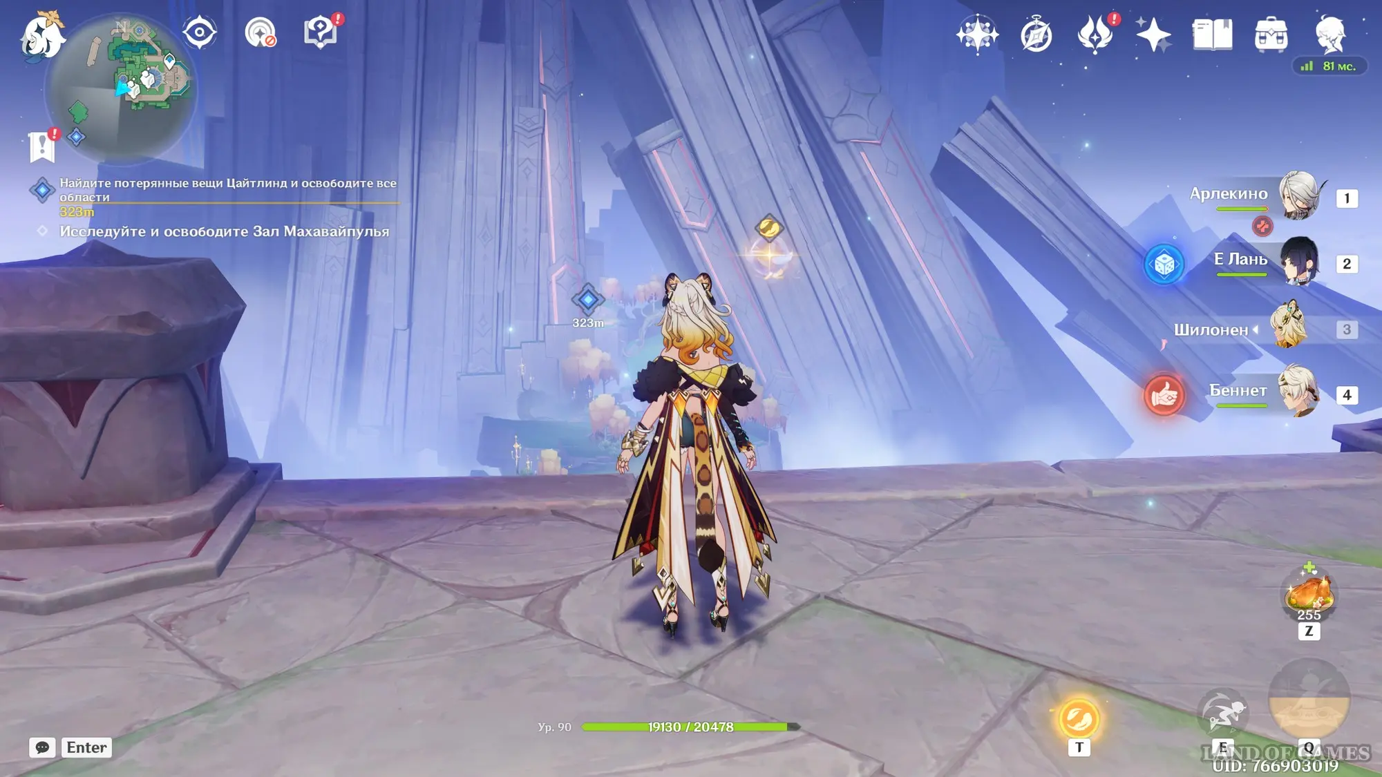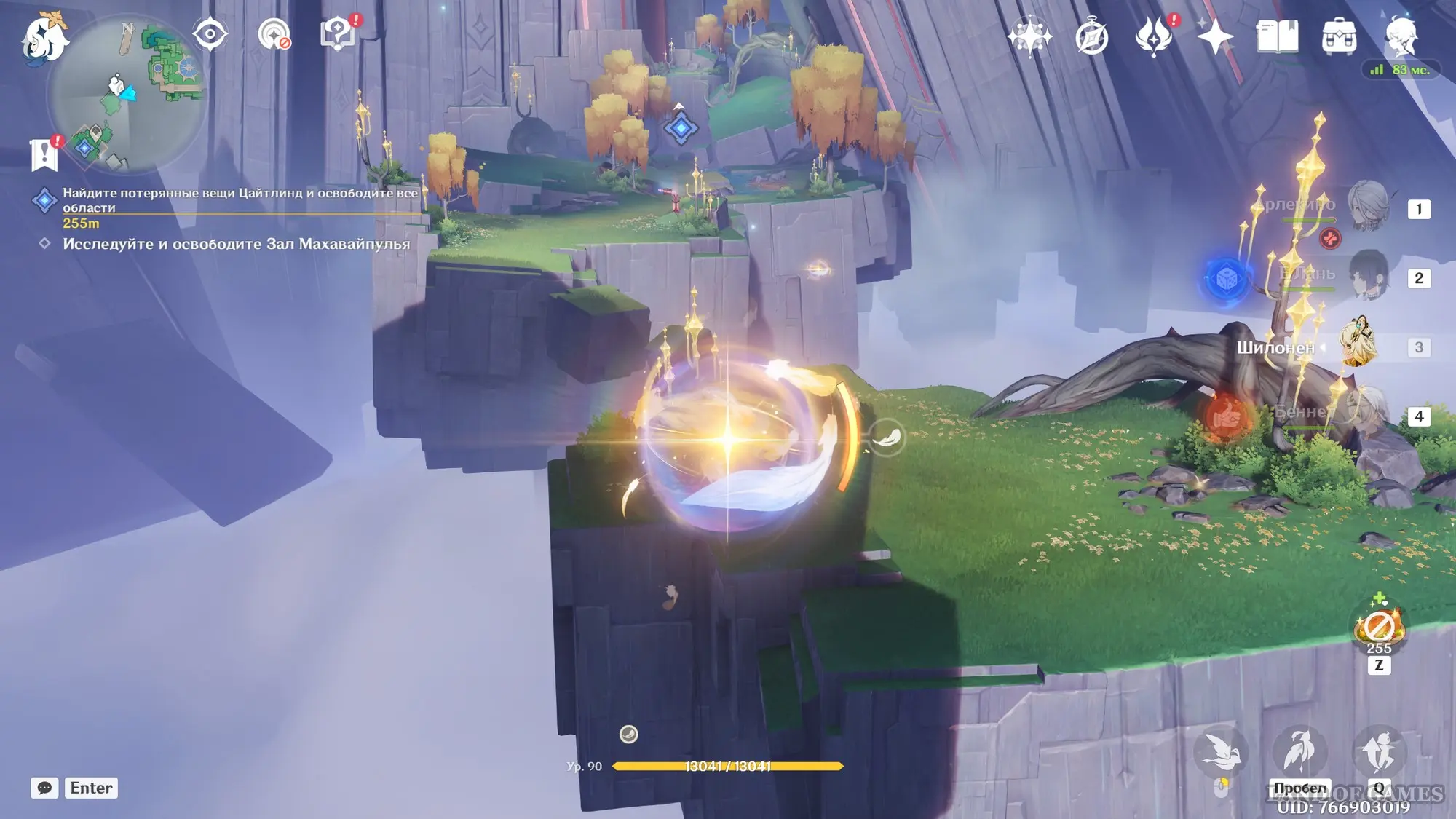Бегите вперед к драгоценному сундуку и посмотрите новый ролик. После его просмотра заберите содержимое сундучка, а затем пройдите налево и встаньте на страничку, чтобы подняться наверх. Продолжайте следовать за маркерами, разобравшись по пути с двумя хиличурлами и открыв обычный сундук.