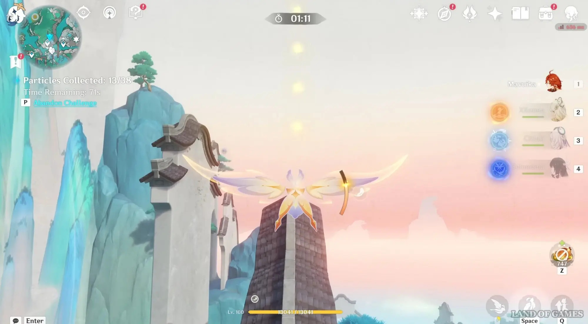Сначала спрыгните с холма и летите в сторону Гео частиц чуть впереди. Резко спуститесь вниз с помощью атаки в прыжке. Затем летите к следующему ряду желтых сфер и совершите еще одну атаку вниз. Вновь воспарите в небо и начните перемещаться от одного гарпастума к другому, подбирая по пути частицы. Весь процесс показан на видео ниже.