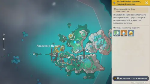 В Genshin Impact Затаившийся дракон, парящий феникс является заданием мира Храма пространства, в ходе которого вы повстречаете мастера школы Гухуа в Академии Луян и решите показать ему свои техники. Для этого вам предстоит продемонстрировать ему свои способности на столбах, крыше и в воздухе. Тем самым вам удастся открыть ачивку «Где же ныне скрытый свет Пути лезвия дождя?». Если у вас появились трудности с получением и прохождением квеста, то изучите наше руководство.