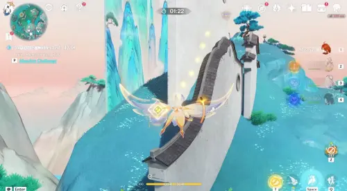Снова пообщайтесь с персонажем с картины и согласитесь показать ему свое мастерство. Для этого вам необходимо будет пройти небольшое испытание по сбору 7 Гео частиц, которые будут появляться перед вами на каменных столбах. Просто перелетайте быстренько с одной колонны на другую, чтобы пройти челлендж.