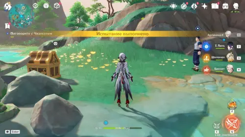 Затем откройте обычный сундук и вновь поговорите с Чжансунем. Он похвалит вас, а потом отправится в следующее место. Поднимитесь на гору и пройдите на луг, где вас уже будет ждать мастер.