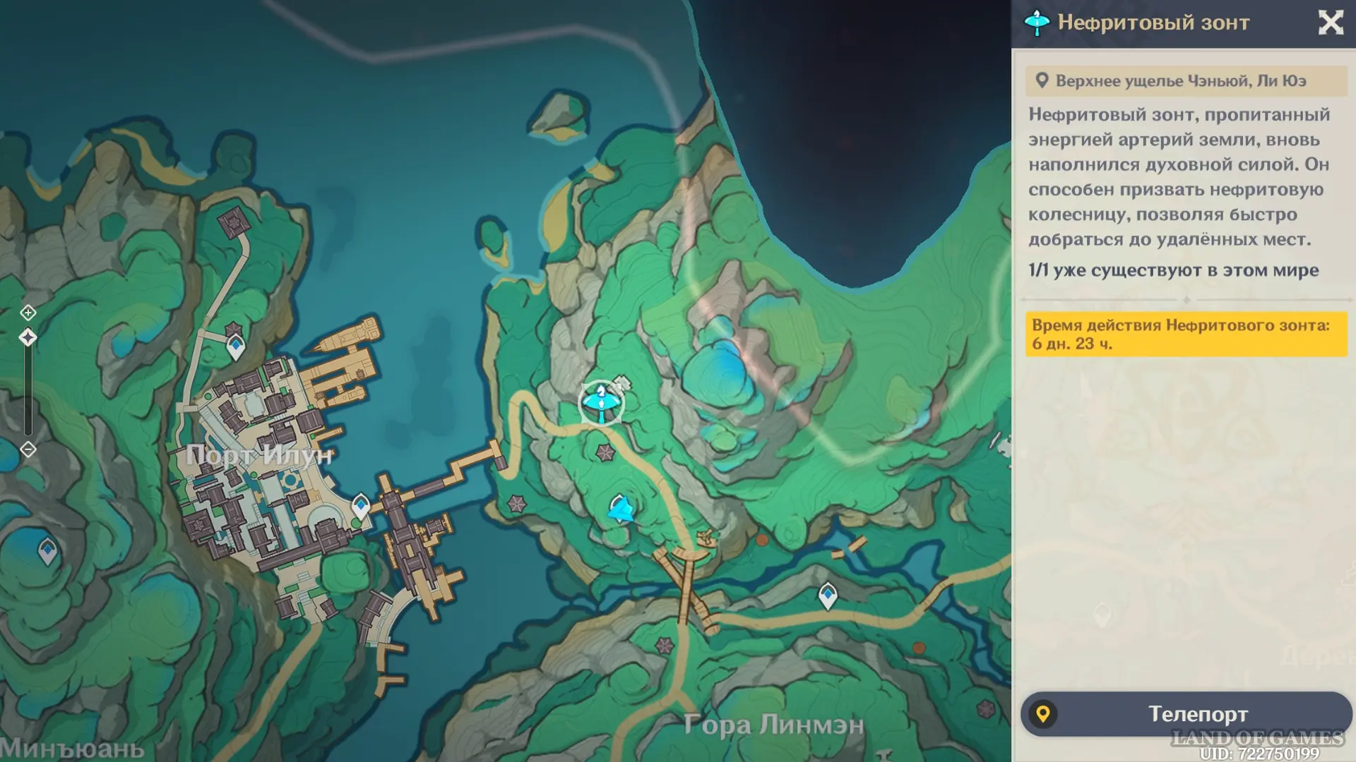 От северо-восточного телепорта в Гавани Ли Юэ спуститесь на уровень ниже. Как только вы окажетесь на месте, запустится диалоговая часть квеста: не встретив на месте Адепта, герои коснутся зонтика, а последующее действие перенесет нас в долину Чэньюй.