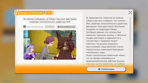 Например, передав Мию в руки Яо Гуан, вы получите ачивку «Из-под земли достанем», а на «Шерстяном портале» сможете опубликовать пост: «Экстренное сообщение: на Юйцюэ Сяньчжоу арестована секретарь директора Мия». После случившегося детективы вернутся в офис видеонаблюдения на телебашне и наконец-то разгадают, почему посреди комнаты навалена куча стульев – на этом квест будет официально завершен.