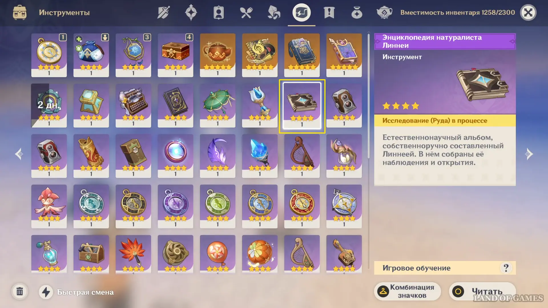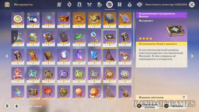 Энциклопедия натуралиста — это уникальный предмет, доступный только игрокам, выкрутившим себе на аккаунт Линнею. Он появится в багаже (вкладка с инструментами), если прожать значок «!» около шкалы с уровнем дружбы в меню персонажа (примерно как это было с подарком получившим Цзы Бай).