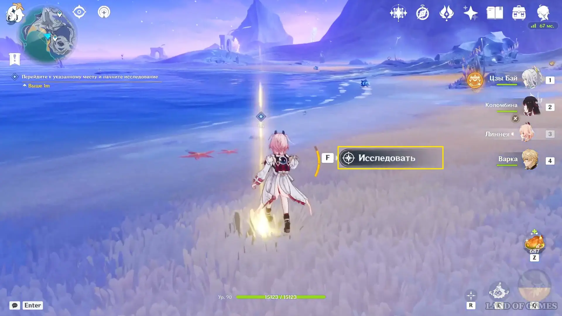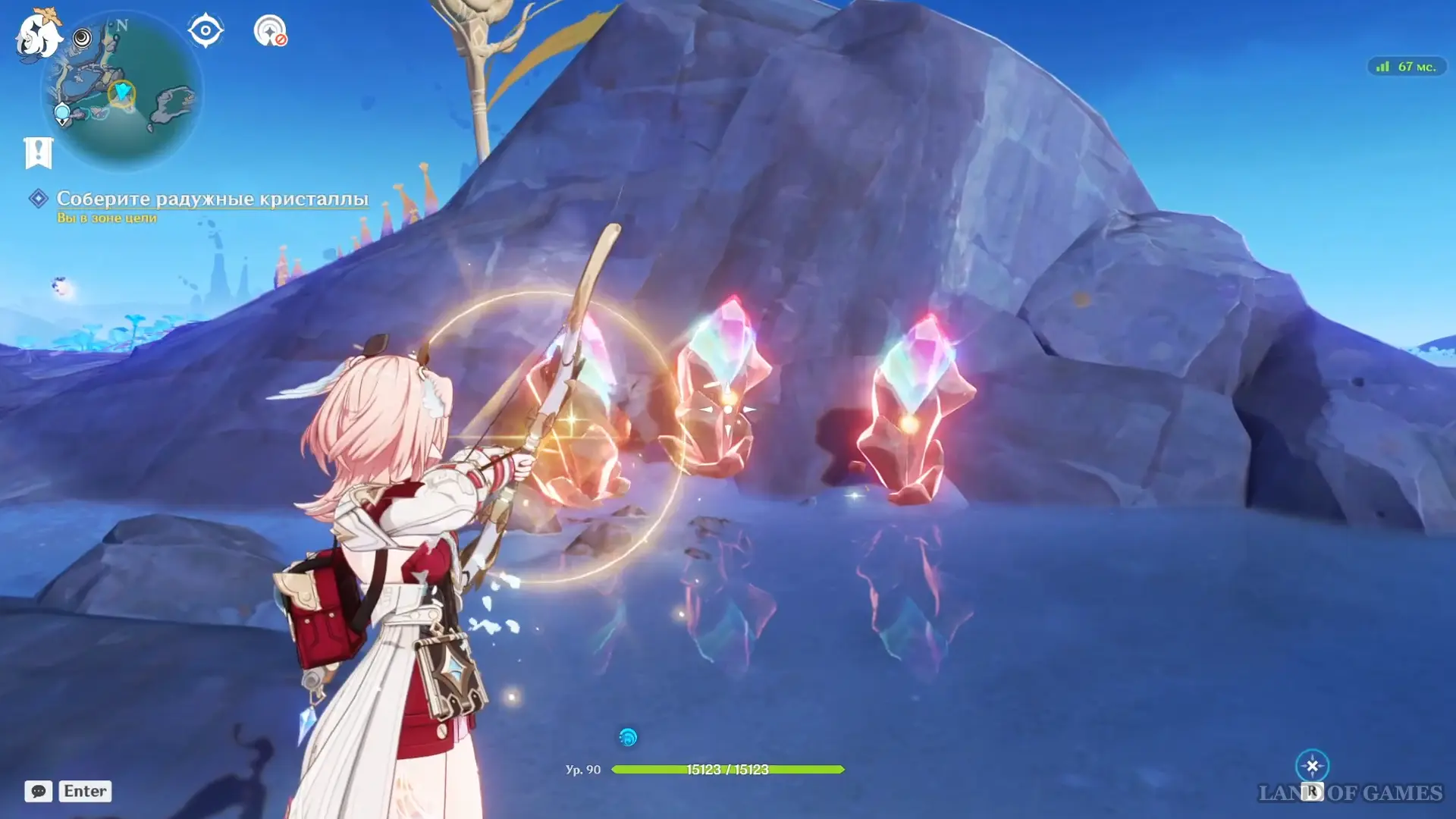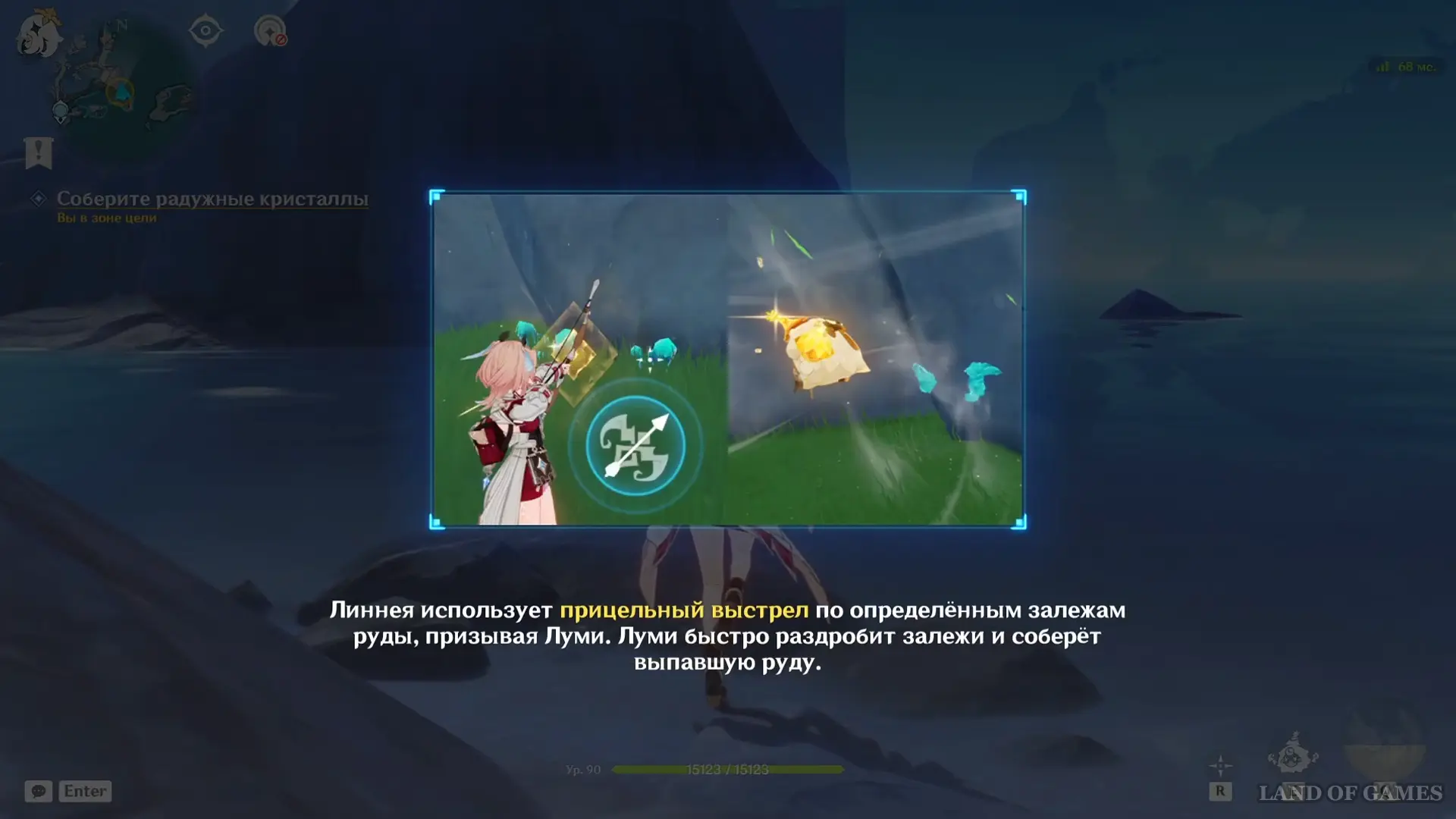 Прибыв на место, обойдите участок с северной стороны. Обнаружив кристаллы, стреляйте в залежи заряженной атакой Линнеи: призванный Луми соберет ресурсы, и миссия будет завершена.