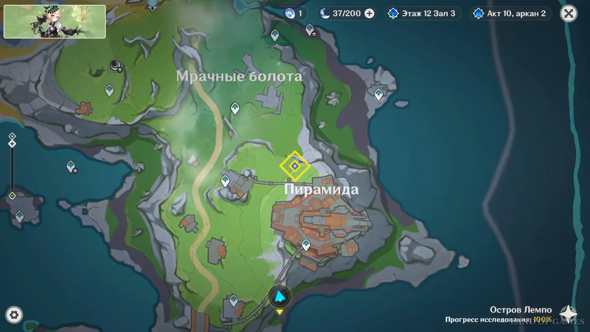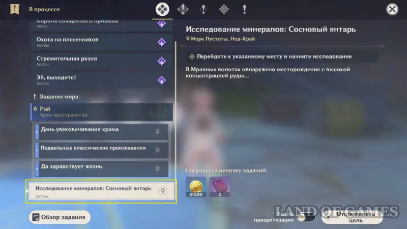 Сосновый янтарь находится у северного подножия Пирамиды, на холме рядом с Мрачными болотами (Море Пустоты).