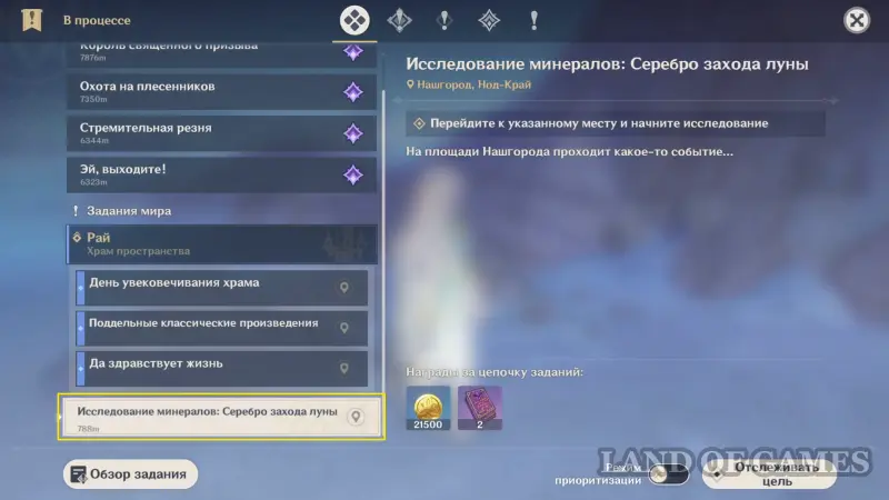 Чтобы исследовать Серебро захода луны, переместитесь на площадь в Нашгороде и дождитесь вечера. Если прибудете раньше, просто активируйте квестовый маркер — игра автоматически перемотает время до нужного момента.