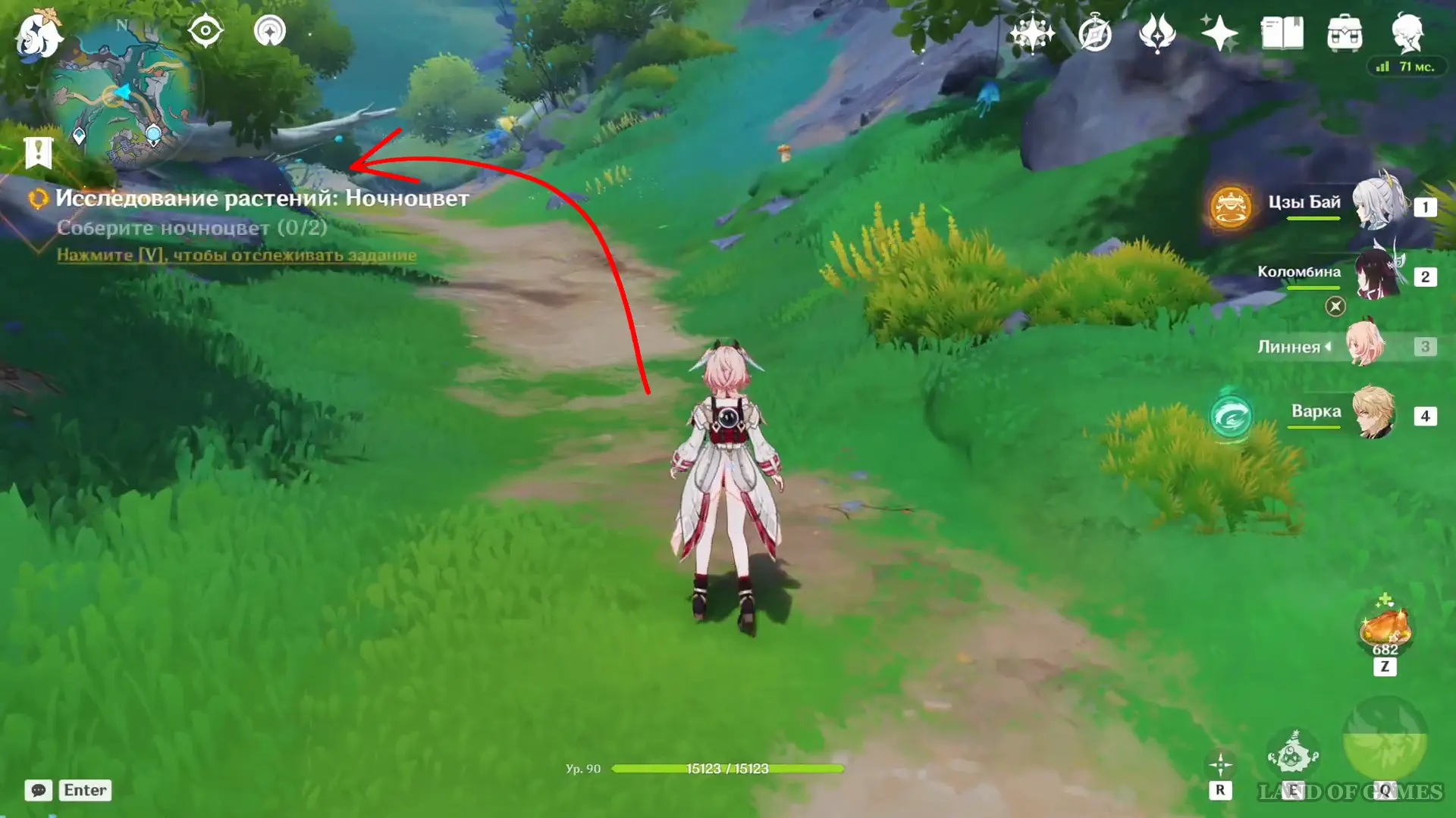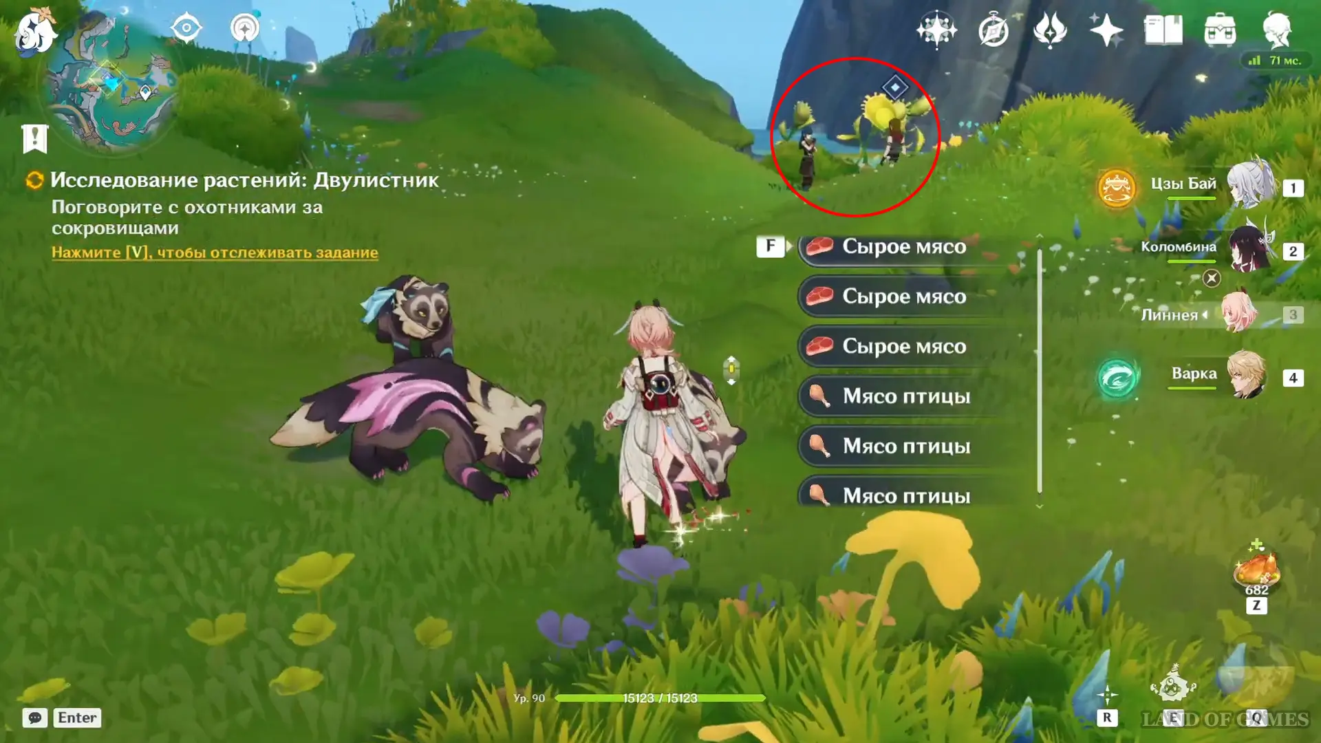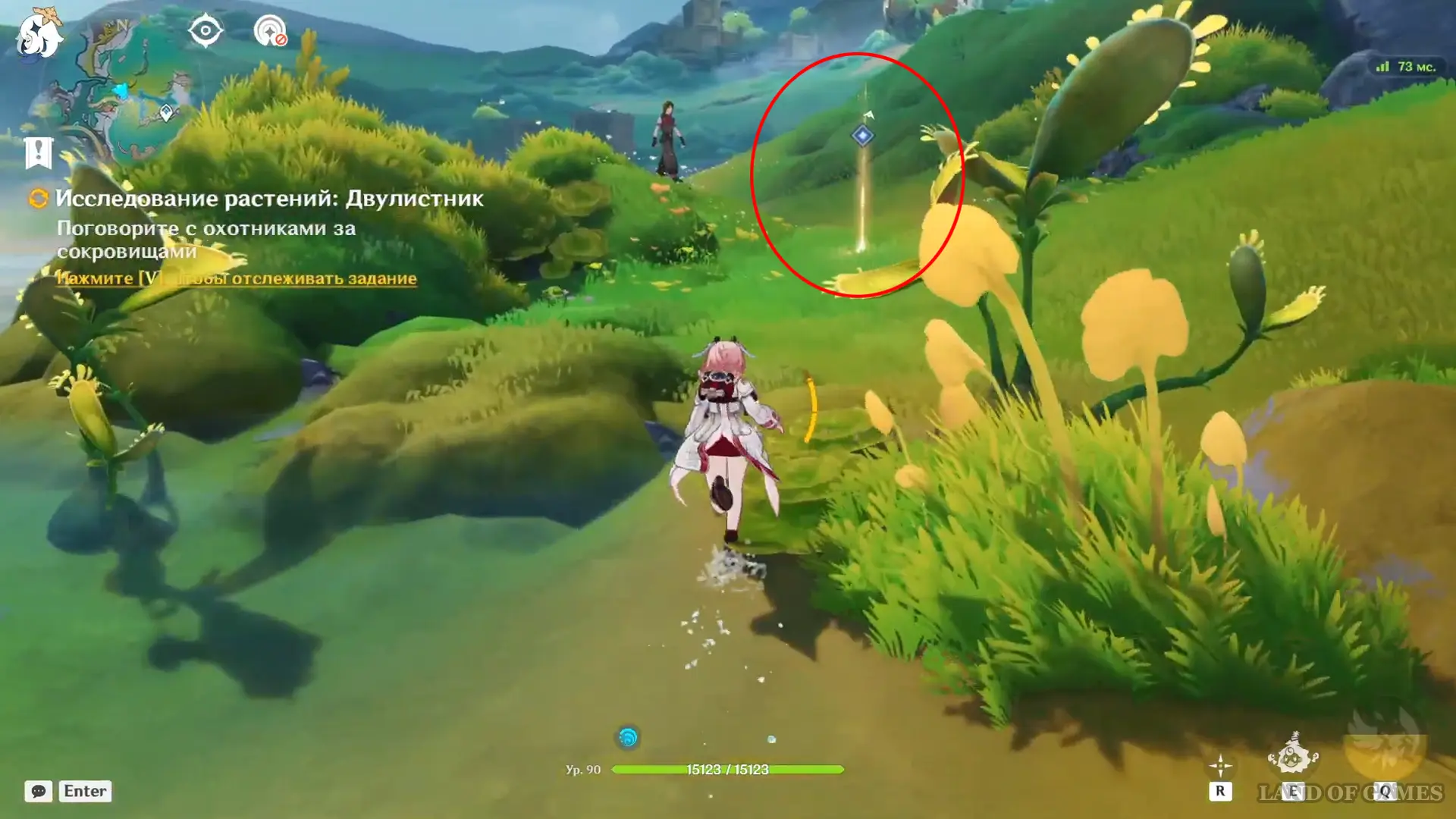 Затем следуйте за Луми и осматривайте растения, заинтересовавшие питомца. Линнея почти сразу услышит слабый голос кошки — ее удастся найти после осмотра самого дальнего куста Двулистника на северо-западе заводи.