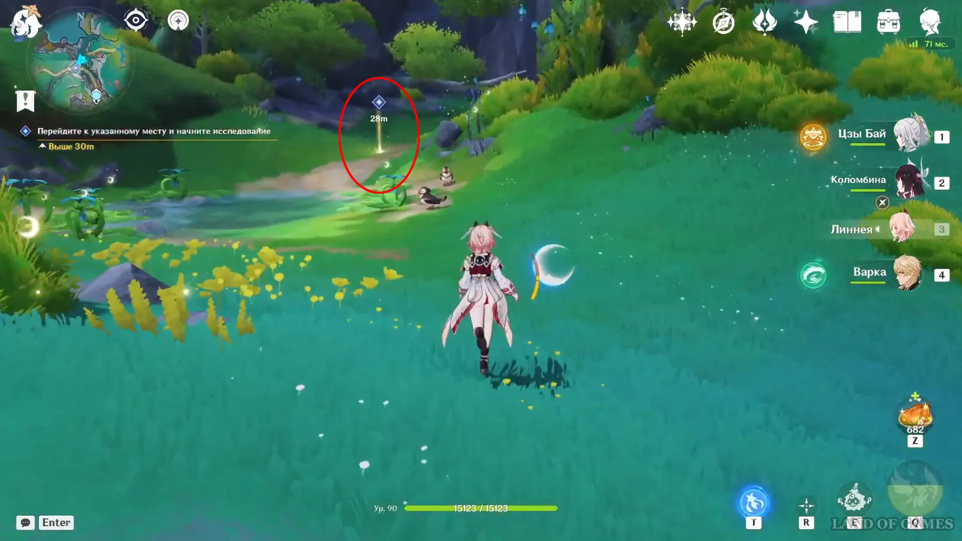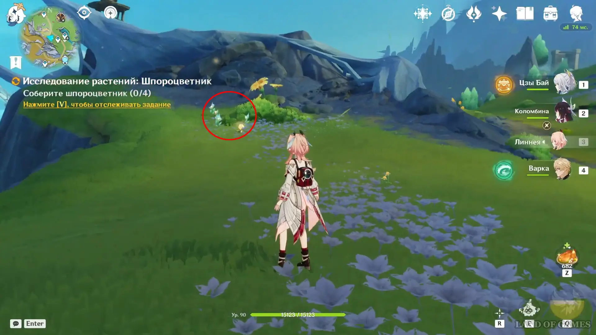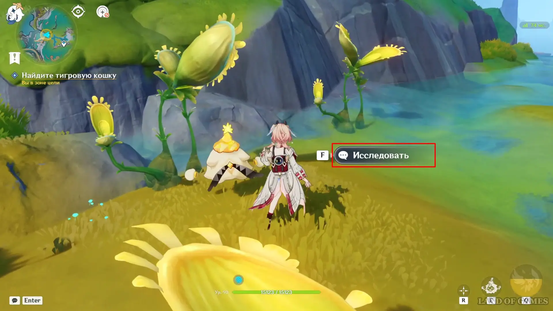 Затем следуйте за Луми и осматривайте растения, заинтересовавшие питомца. Линнея почти сразу услышит слабый голос кошки — ее удастся найти после осмотра самого дальнего куста Двулистника на северо-западе заводи.