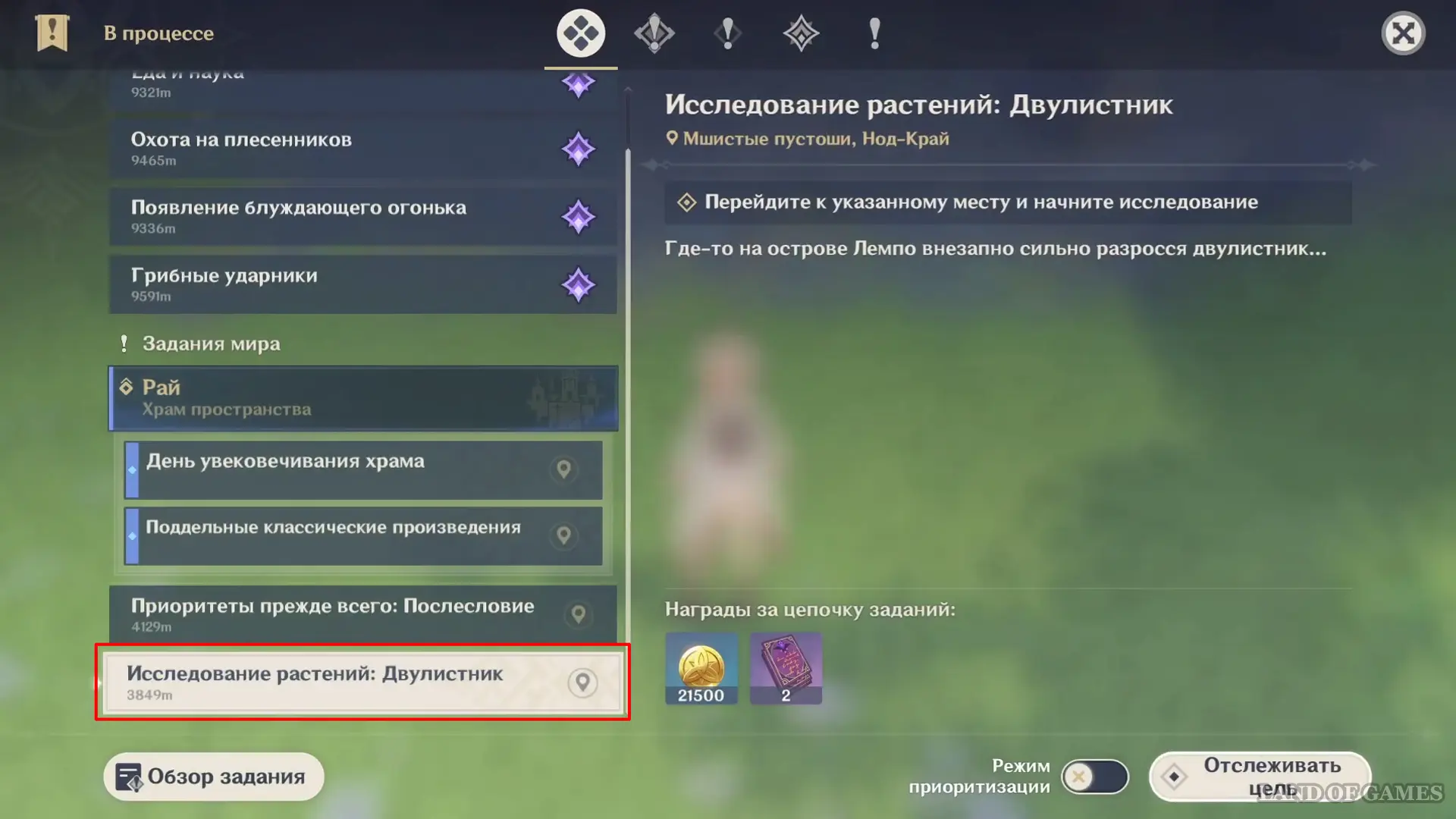 За каждое выполненное исследование предусмотрена фиксированная награда: 2 фиолетовые книги опыта и до 21 500 моры.