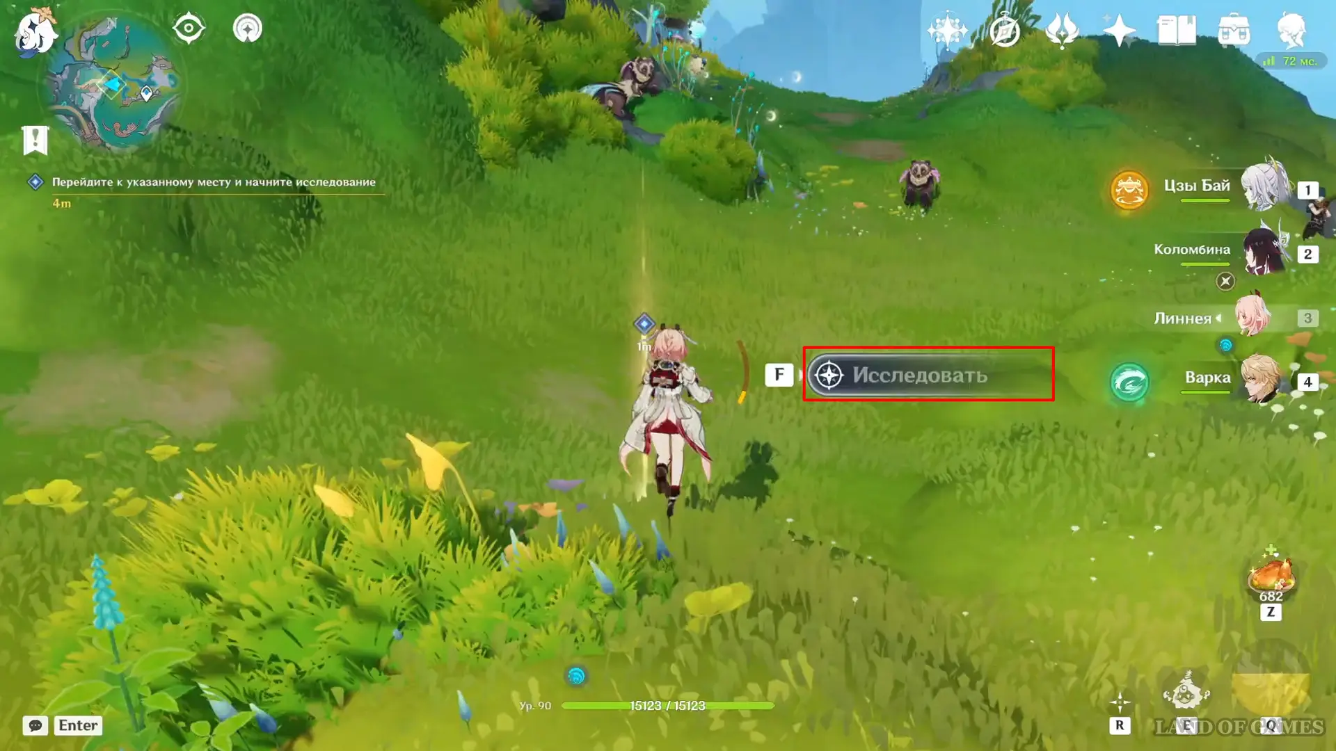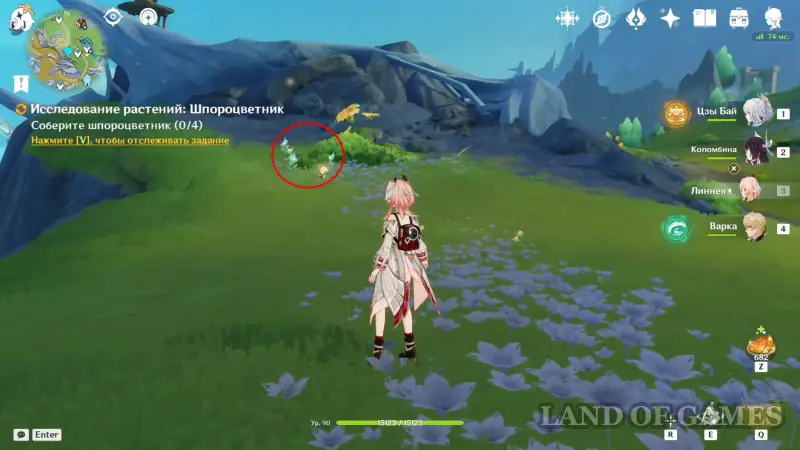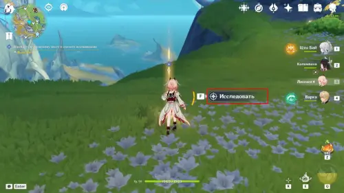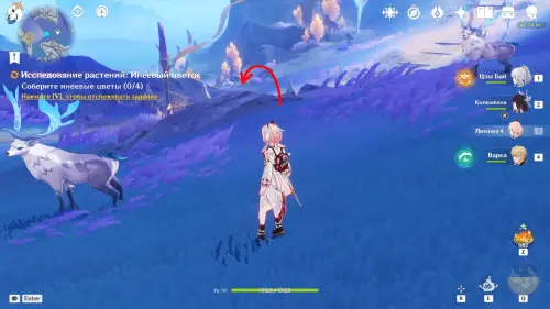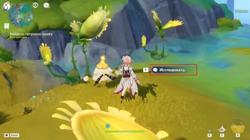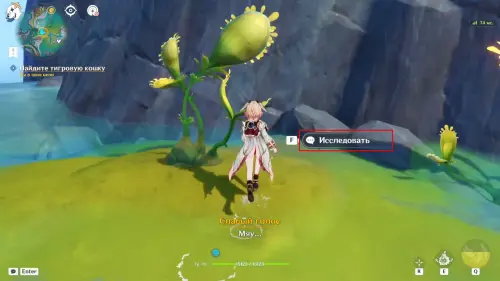 Цель исследования — сбор 4-х образцов растения. Подойдите к кустарнику на северном краю холма и соберите нужное количество материалов, чтобы завершить этап.