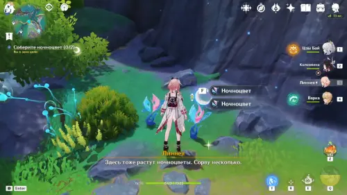 Чтобы собрать образцы, двигайтесь по дорожке на запад и сверните к поваленному дереву с белым стволом по левой стороне — здесь растут 2 Ночноцвета. После сбора Линнея наткнется на Веса и Метту, поможет детям помириться и обзаведется еще двумя помощниками в сборе диковинок.