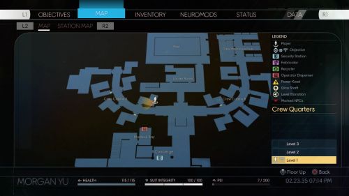 Теперь начинается сама сложная часть. Для нахождения Локвуда вам нужно проследить за ним через комнату службы безопасности. К частью, одна из них находится на первом этаже хранилища данных. Откройте вкладку экипажа и найдите его имя в разделе Грузовой отсек. Как только вы кликните по ней, то получите маркер, указывающий на тело Гранта.