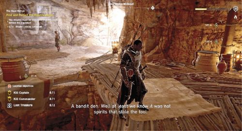 Взберитесь на гору с южной стороны, а затем проберитесь в пещеру на севере. Тут вы отыщите труп Хапти. Найдите его обручальный браслет, а после направляйтесь на юго-восток и разыщите супругу рабочего, которая будет работать на местной ферме. Побеседуйте с ней, чтобы завершить миссию.