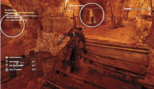 Далее вам необходимо будет отыскать 3 части диоптрия и собрать их. Первым делом доберитесь до пещерного тоннеля. Воспользуйтесь Сену, чтобы изучить вершину горы и выяснить расположение всех 3-х элементов инструмента.