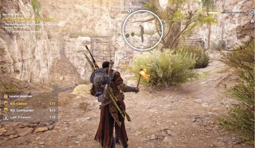 Доберитесь до Аполлонии и поболтайте там с женщиной по имени Агата. Она сообщит вам, что ее сына по имени Тит бросили в клетку за то, что он пытался дезертировать. В настоящее время его удерживают в местных казармах. Вам нужно будет освободить паренька из заточения. Сначала отправьте ястреба на разведку, чтобы отметить всех врагов и найти пленника.