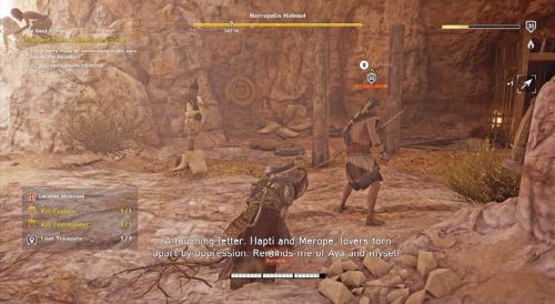 Выведите пленника из казарм и поболтайте с ним. Он попросит вас забрать лист с именами шпионов из лагеря Гидракс. Идите на северо-восток и найдите нужный аванпост, находящийся в Мармарике. Затем используйте ястреба, чтобы отыскать список – он окажется у центуриона. Разберитесь со всеми врагами и заберите бумажку для завершения миссии.