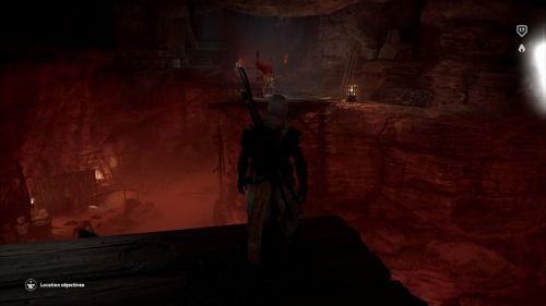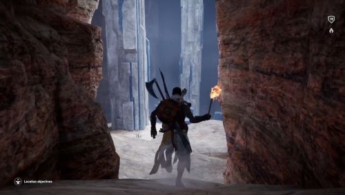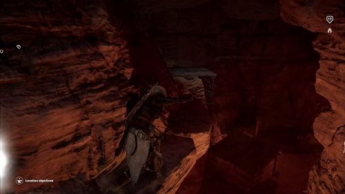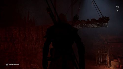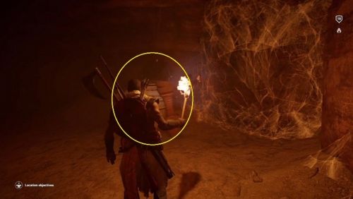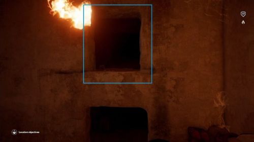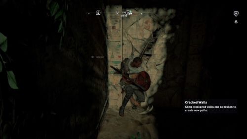 В новом помещении вы найдете ворота, однако Байек не сможет пройти через них, поэтому необходимо вернуться на верхний уровень, но на этот раз повернуть налево. В определенный момент вы дойдете до места, где вам придется взобраться на возвышенность. Можно будет осветить эту локацию огнем от факела. В верхней части вы должны будете увидеть проход. Присядьте и проползите на противоположную сторону. Оказавшись в новом помещении, отыщите следующий проход. Он окажется заблокированным, но вы сможете открыть его, попросту нажав на него.