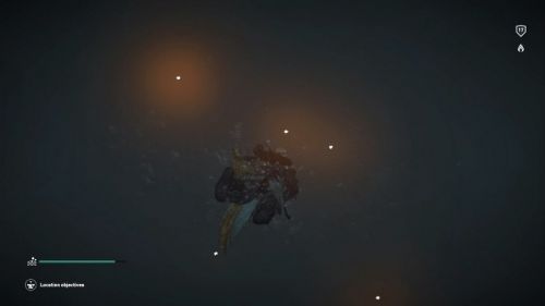 Поднявшись, пройдите в коридорчик справа и идите по нему, пока не окажитесь возле небольшого водоема и открытого участка, с которого видно небо. В правой части помещения на выступе можно найти сундучок. Если поднимитесь наверх, то снова окажитесь в лагере.