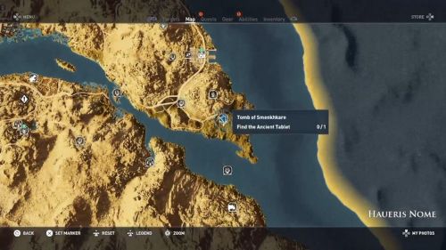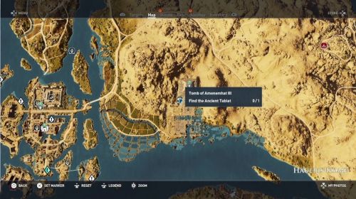 Отыскать это захоронение вы сможете в северо-западной части Нома Уаб. На юго-западе от водоема, находящегося между номом и Оазисом Белой пустыни вы увидите схождение двух дорог и разветвление, идущее на юг – в конце него вам и удастся отыскать вход, расположенный прямо в скалах. Это место трудно пропустить, так как возле его входа лежит тело зверя. Рядом с ним также летают грифы, питающиеся останками животного.