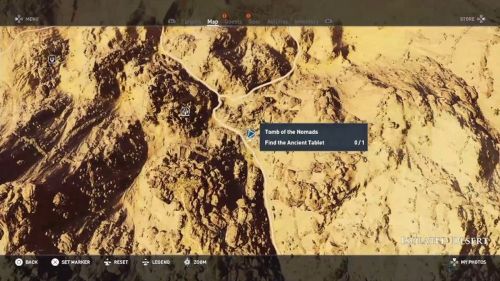 Ее можно отыскать в регионе Уединенная пустыня, в северо-западном уголке карты. Тут также расположен лагерь кочевников. В скалах рядом с палатками можно отыскать проход в могильник. Его отлично видно издалека.