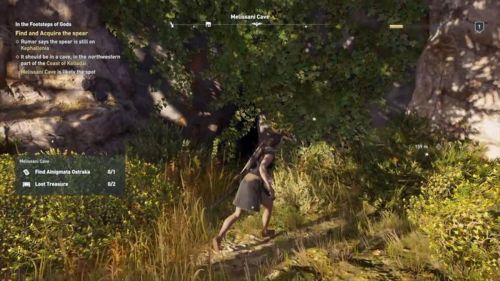 Вы увидите жрицу перед храмом. Она сообщит вам об исчезновении копья. Согласитесь найти его. Направляйтесь на северо-запад и отыщите нишу в стене. Взаимодействуйте с ней, чтобы пройти в пещеру. Советуем подготовиться к серьезному бою, так как в подземелье вы столкнетесь с большим количеством врагов.
