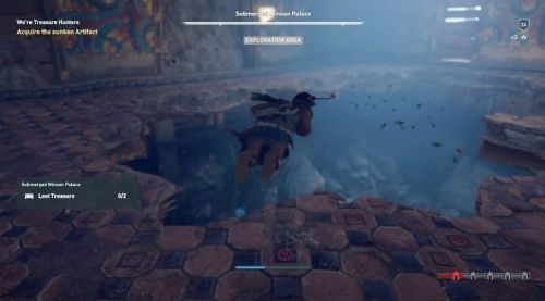 Направляйтесь в южную область региона и отыщите там лодку. Доплывите до нее и погрузитесь в воду, так как именно на дне водоема расположены пещеры с сокровищем. Рекомендуем вам использовать орла, чтобы найти пару сундуков под водой.