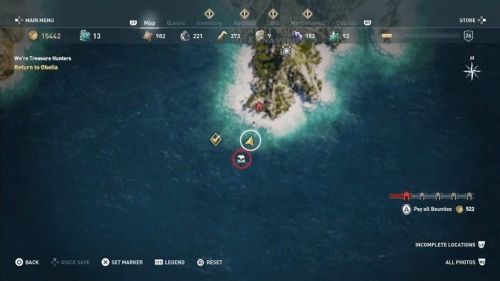 Добравшись до нужной локации, воспользуйтесь орлом, чтобы найти все 6 пропавших сундука. Большинство из них лежат на дне, однако один все же находится на побережье. После сбора охры квест автоматически завершится.