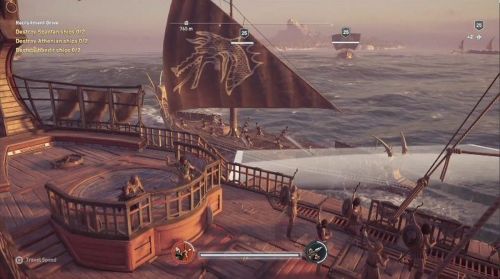 Запомните, что афиняне плавают по морю под синим флагом, пираты – под черным, а спартанцы – под красным, то есть судна с флагами желтого и белого цвета топить не нужно. Уничтожив или взяв на абордаж нужное количество кораблей, возвратитесь к квестодателю и сообщите ему об успешном завершении миссии.