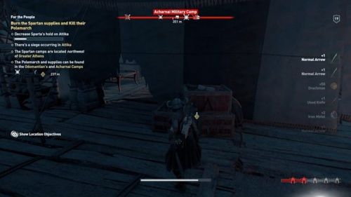 Доберитесь до локации Большие Афины и найдите в нижнем левом уголке населенного пункта нужного вам персонажа. Поговорите с ним и согласитесь помочь ему. Он попросит вас уменьшить влияние Спарты в данной области. Для этого вам придется уничтожить припасы и разобраться с полемархом.