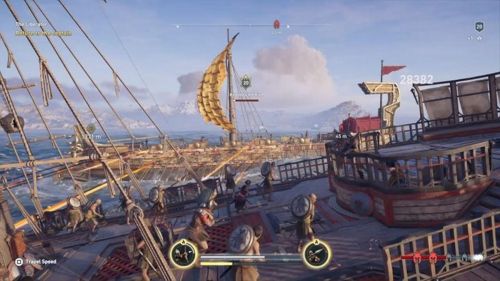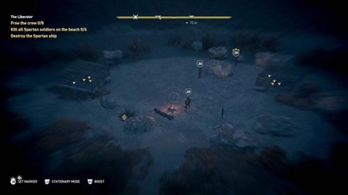 Снова возьмите персонажа на руки и донесите его до отмеченного побережья, где стоит судно Ономакла. Когда вы окажитесь в нужном месте, то узнаете, что спартанцы захватили команду капитана и охраняют проход с бухты с помощью своего корабля. Спуститесь к побережью, разберитесь с шестью стражниками, а затем освободите экипаж Ономакла. Далее доберитесь до собственного судна и потопите спартанскую лоханку.
