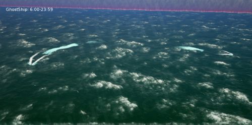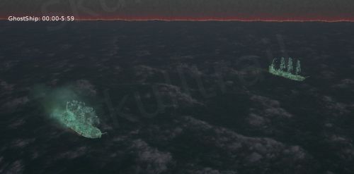 Девятый камень силы (голубой) находится на борту уникального Корабля-Призрака. Он появляется в клетке F14 ровно в 00:00 часов по времени ячейки (если только спавн не совпадает со временем его восстановления после уничтожения другими игроками). Его можно увидеть лишь в период между 00:00 и 5:59, однако в дневное время суток вы вполне можете заметить брызги и рябь, создаваемые этим судном.