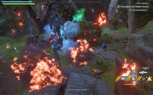 Говорим с Халуком, стоящим неподалеку от джавелина, и запускаем последнюю сюжетную миссию. Летим вслед за маркером, уничтожая всех врагов на пути. В первую очередь избавляемся от ледяных хвероморфов, способных замораживать персонажа.