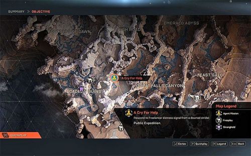 Находясь в форте, находим и говорим с Даксом – он будет сидеть в своем доме. Беседуем с еще несколькими важными персонажами, а потом запускаем экспедицию. Доходим до указателя и находим разрушенный Страйдер. Тут Шрамы будут биться с бандитами. Расправляемся с большинством врагов, замечаем лидера головорезов и убиваем его. Оставшиеся противники, скорее всего, исчезнут. Входим в Страйдера и обнаруживаем подсказку.