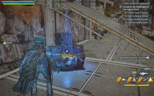 Снова отправляемся в экспедицию. Летим к маркеру и проводим зачистку области от Шрамов. Потом подбираем первое подношение. Направляемся в следующий лагерь, где нам предстоит сразиться с еще большим числом врагов. При разрушении турелей стоит экипировать своего персонажа ледяными гранатами. Тем самым мы сможем замораживать башенки, подлетать к ним сбоку и спокойно стрелять во взрывоопасные канистры.
