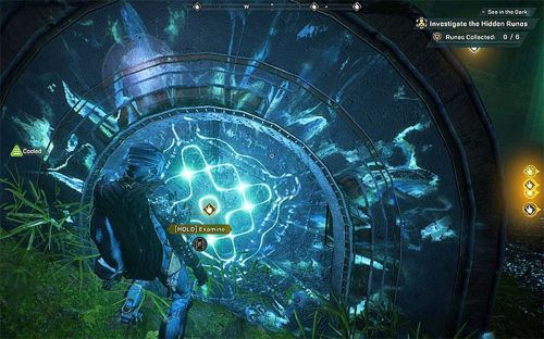 Потом долетаем до нужного места и включаем метку Архологов. Держим оборону, пока заполняется шкала. Прыгаем в воду и плывем вперед, пока не найдем проход в подземелье. Проходим внутрь.