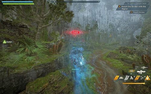 Данный квест тоже относится к прологу, так как мир игры будет открыт лишь частично. Учимся следить за перегревом двигателя своего джавелина, наблюдая за полоской, расположенной немного ниже центральной части дисплея. Если видим, что она покраснела, то тут же выключаем ускорители, чтобы они успели остыть. Если перегрузим их, то они вырубятся автоматически и нам придется ждать охлаждения намного дольше.