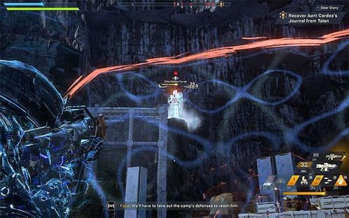 Летим в лагерь и разрушаем 5 турелей. Применяем комбо для нанесения максимального урона. Уничтожив все башенки, проходим в убежище. Просматриваем кат-сценку, в которой будет показано появление Таллона.