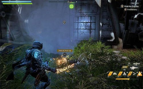 Расправившись с боссом, находим возле Страйдера батарею. Берем ее, а потом забираемся на крышу транспорта: сначала лезем по ноге, а потом карабкаемся на туловище (совершать полеты, держа в руках предмет, нельзя). На боковых элементах устройства находим 2 панели. Стреляем в них и активируем. В результате откроются двери, и мы сможем пройти в Страйдер, чтобы найти накладной лист. Дверца отпирается путем нажатия кнопки сбоку от нее.